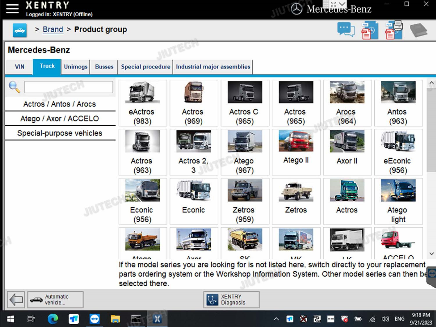 Actros963/4, Actros2,3, AtegoIII, AtegoII, AxorII, Eonic, Zetros, Actros, Atego Light, Atego Heavey, HPN M96, Atron, HPN M2000, SKL, FSK, Seri model lainnya