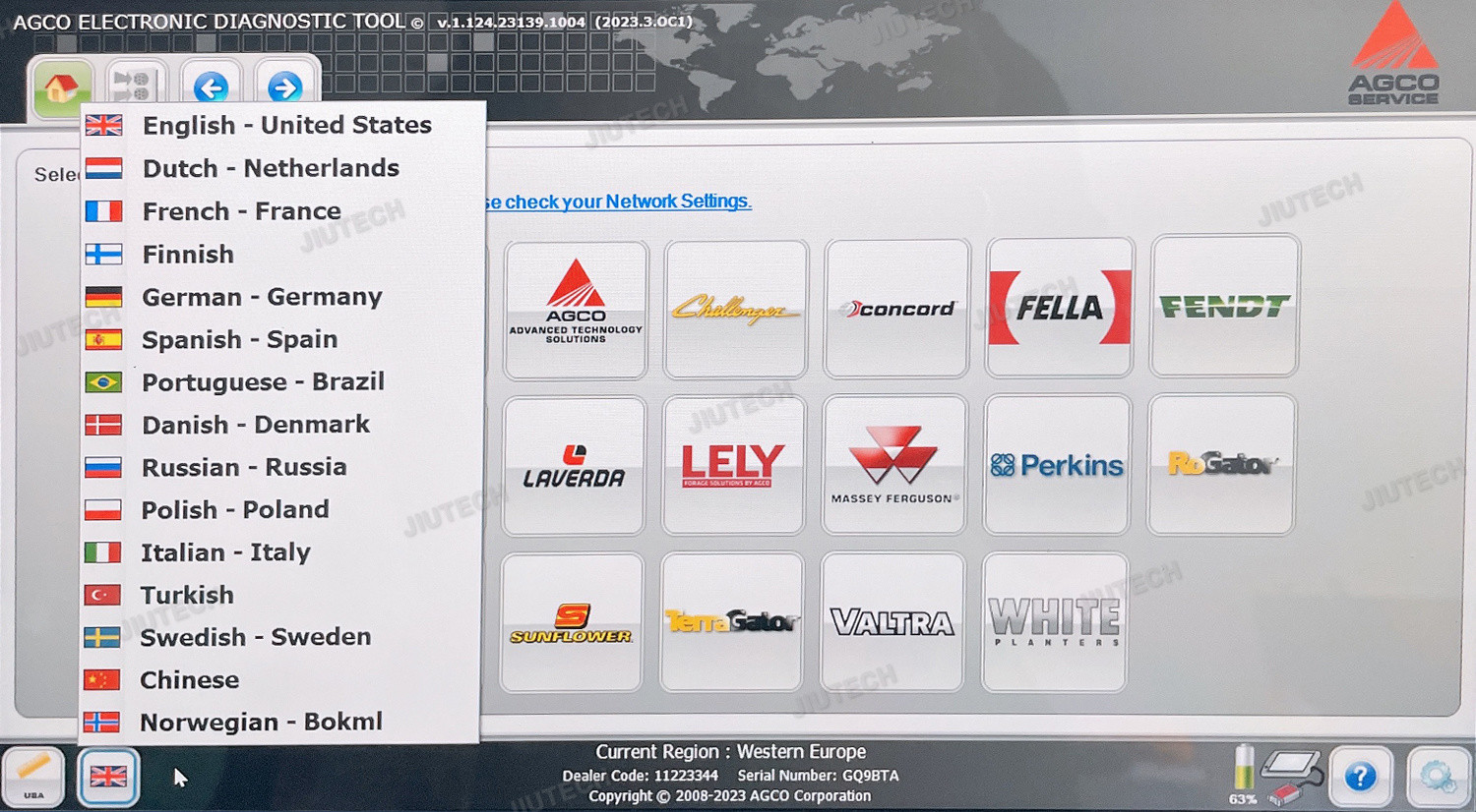 | mendukung | alat diagnostik elektronik agco edt | bahasa | Alat diagnostik multibahasa |